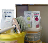 Lehmfeinputz kann Idealerweise auf einem Untergrund bestehend aus Lehmunterputz oder Lehmbauplatten aufgetragen werden. Lehmfeinputz, der zusätzlich mit farbigen Tonen behandelt sein kann, dient der dekorativen Gestaltung von Innenwandoberflächen auf tragfähigen Untergründen.